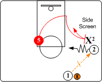 Side Screen ActionPost steps out and sets an on ball screen for wing O2 initiating screen and roll action. |