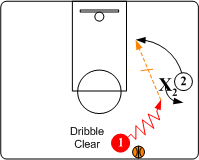 Dribble ClearWhen the wing is over played, the point guard dribbles clears the wing. Wing O2 clears out looking for backcut pass. Wing O2 has options of continuing out to opposite wing or posting up or curling up to the free throw line. The point guard also has the option of turning the corner for a drive to the basket whenever they feel they can beat their defender one-on-one. |