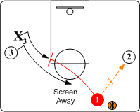 Side ScreenWing O3sets a hard side screen for O1. O1 drives off screen for shot or layup or passes back to O3 rolling to the basket or popping out for shot. |