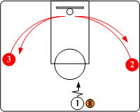 Dribble ClearIf the wing is overplayed, the point dribble clears the wing. Wing O2 makes a backcut to the basket looking for a backdoor feed from O1. If the wing O2 does not receive a pass on the initial backcut, O2 then has options of posting up or clearing out to opposite wing for reversal pass shot or curling up to free throw line for shot. |