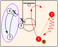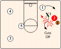 Give & Go Cut: Ballhandler O1 passes to O2 and makes a hard cut to the basket. Passer O2 looks to feed O1 cutting to the basket. |