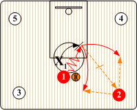 Drive: When O1 receives a return pass from O2, O1 dribble penetrates to the basket. |