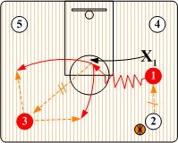 Drive: When O1 receives a return pass from O3, O1 dribble penetrates to the basket. |